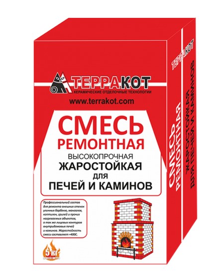 Смесь ремонтная жаростойкая для печей и каминов «Терракот» применяется при проведении ремонтных работ на нагреваемых объектах (печи домовые, камины, печи-барбекю, мангальные комплексы) для заделки мелких трещин, неровностей, раковин, выбоин в кирпиче и кладочном шве, восстановления фрагментов лицевой кладки.