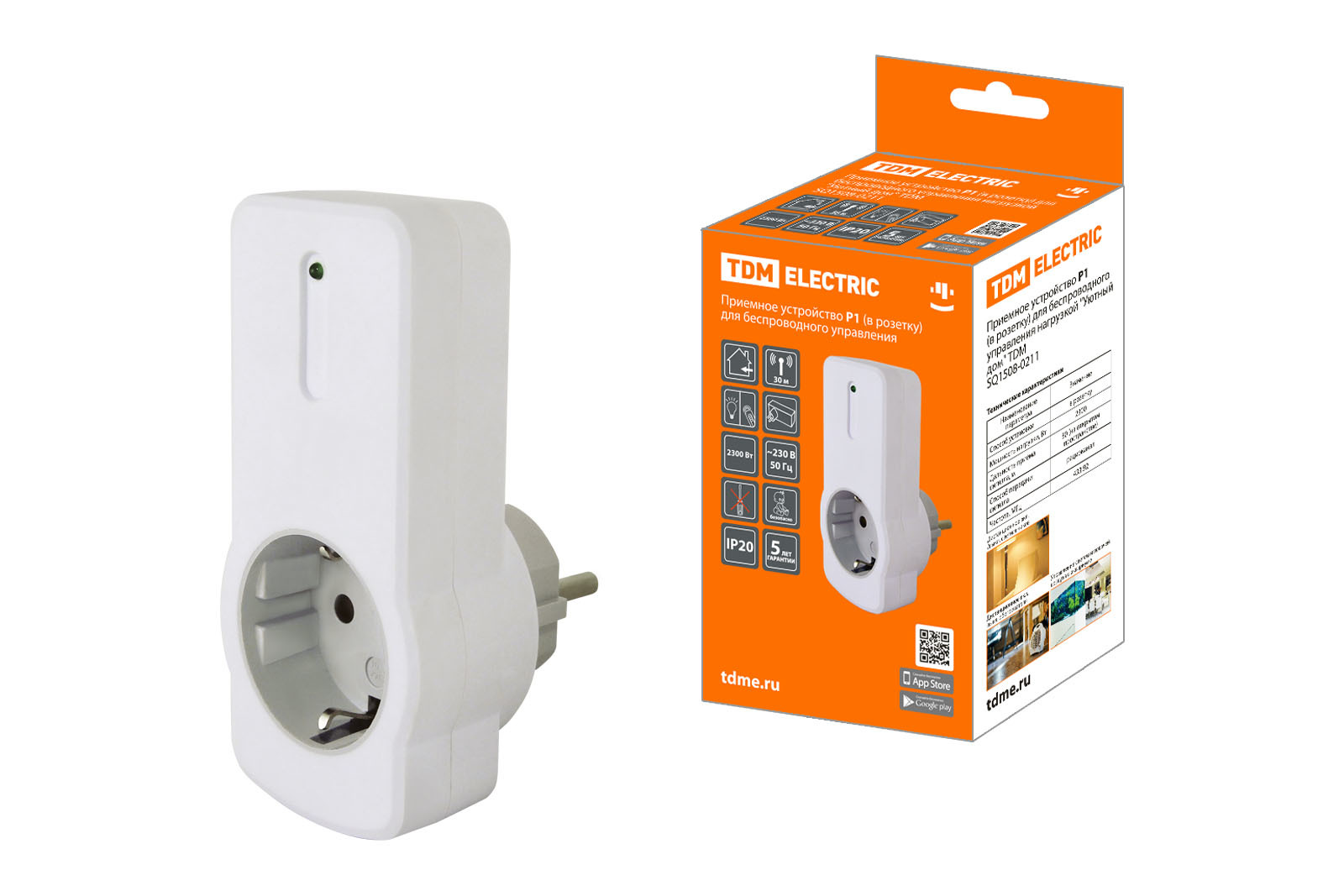 Приемное устройство Р1 (в розетку) для беспроводного управления нагрузкой "Уютный дом" TDM SQ1508-0211