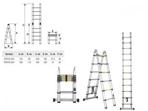 Лестница телескопическая 2-х секц. алюм. 209/440см, 2х7 ступ. 15кг Startul ST9733-044