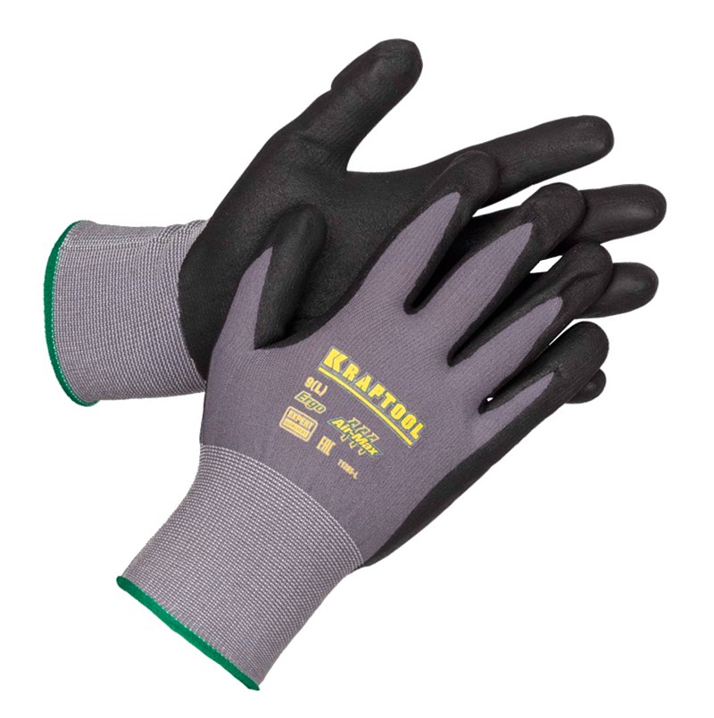 KRAFTOOL Expert – уникальные суперкомфортные перчатки с воздухопроницаемым покрытием из вспененного нитрила для точных работ.