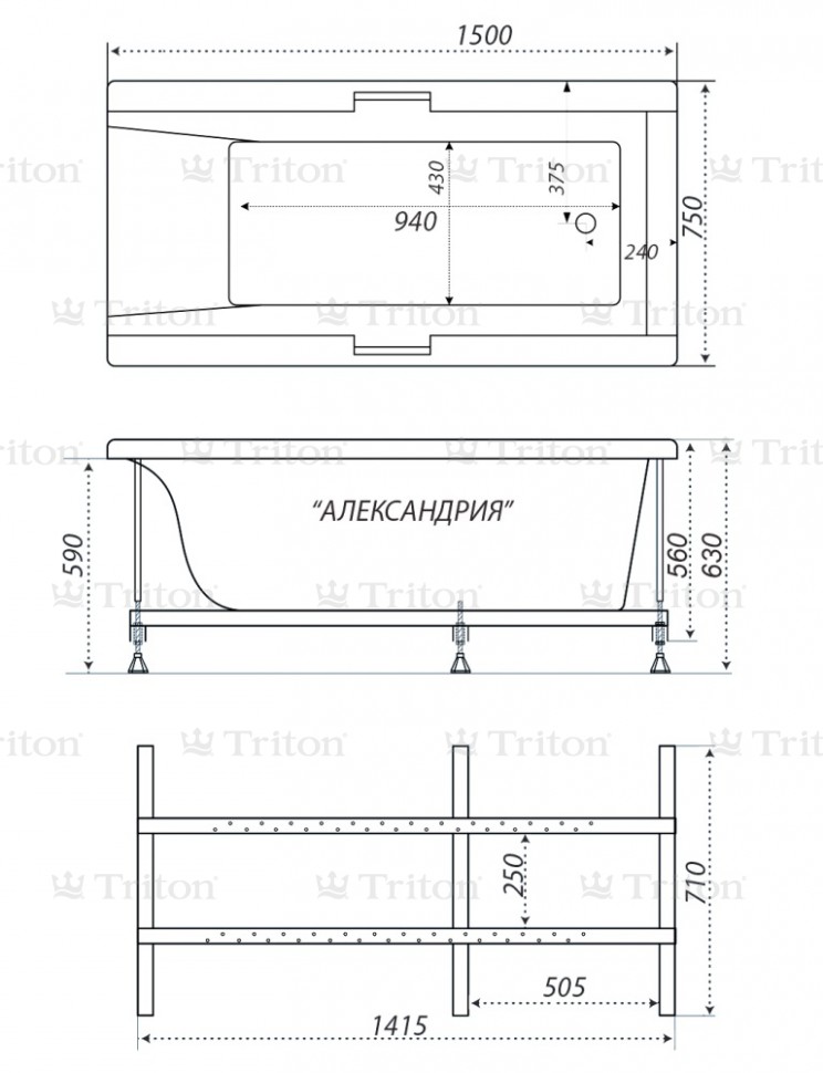 Акриловая ванна Triton Александрия 150x75 Н0000100390