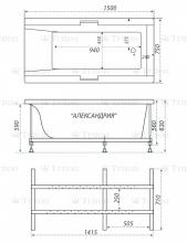 Ванна акриловая 1500х700мм Александрия Экстра