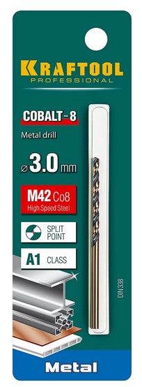 Сверло по металлу HSS-Co 3.0х61мм кобальт Kraftool Cobalt