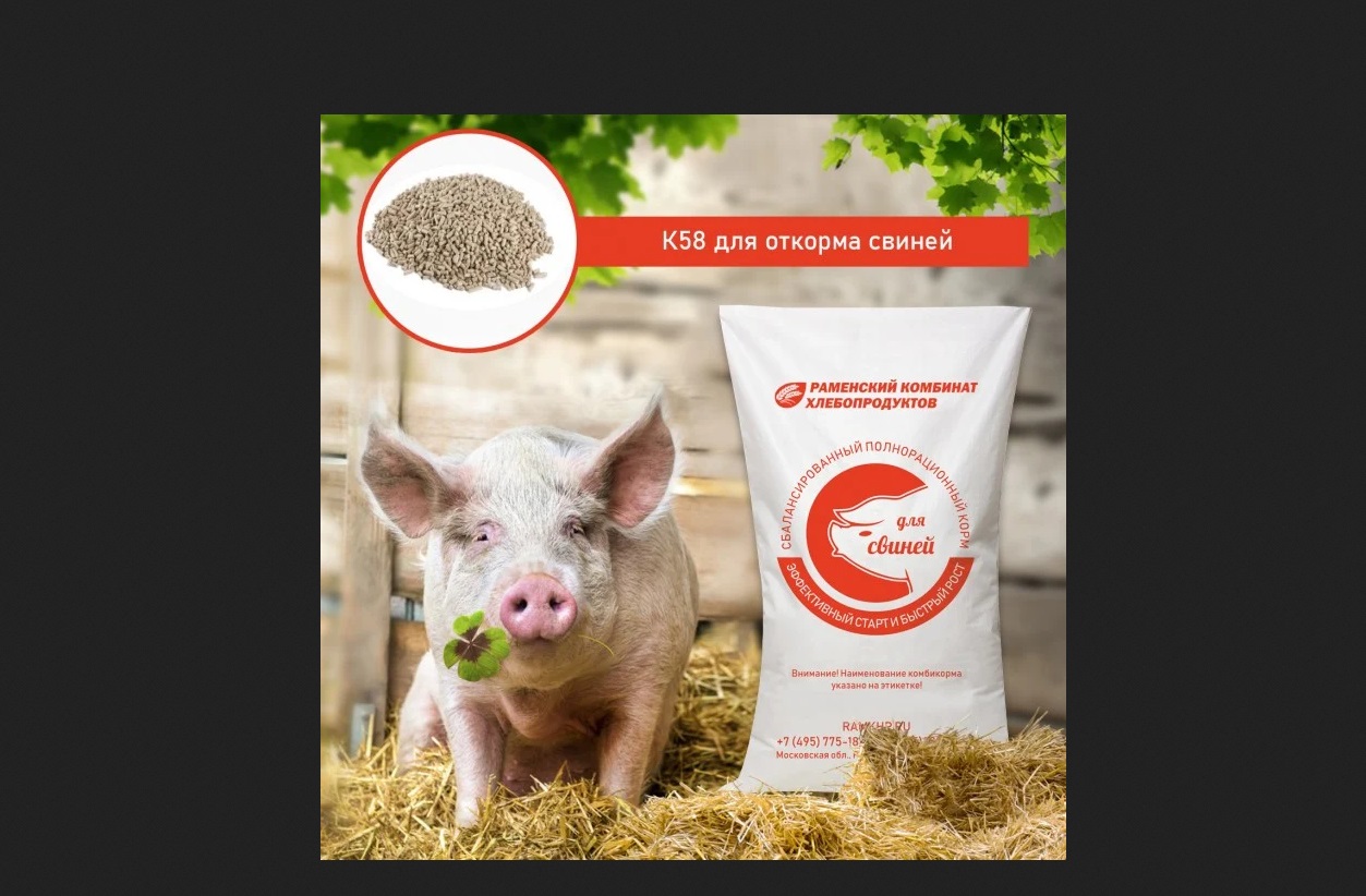 Комбикорм для свиней К-58 ПЗ Раменский гранулы 28 кг