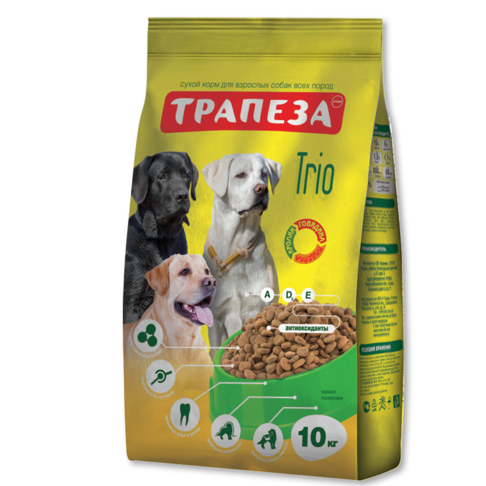 Трапеза Трио сухой корм для взрослых собак 10кг
