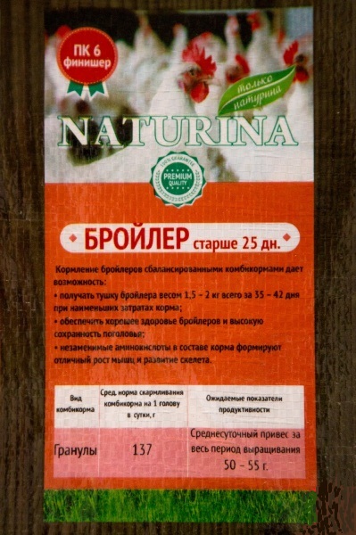 Комбикорм Натурина для бройлеров ПК6-2-195гр финиш от 27 дней Павловский 25кг позволяет получить тушки бройлера весом 1,5 - 2 кг всего за 35-42 дня при наименьших затратах корма• Обеспечение хорошего здоровья бройлеров и высокой сохранности поголовья• Незаменимые аминокислоты в составе корма формируют отличный рост мышц и развитие скелета