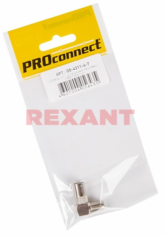 ПЕРЕХОД гнездо F - штекер TV угловой (03-153) PROCONNECT предназначен для подключения эфирного, спутникового и кабельного телевидения с помощью радиочастотного кабеля волновым сопротивлением 50 или 75 Ом. Отличительной особенностью переходника является угловая форма, позволяющая подсоединять провода исключая сильных перегибов в ограниченном пространстве. С одной стороны располагается гнездо F-разъема, а с другой штекер ТВ-разъема. Изготовлен переход из никелированного сплава первичной меди (биметалл), что гарантирует минимальный уровень потерь при прохождении сигнала. Переход соединяется с кабелем методом накрутки F-коннектора, после соответствующей зачистки контактов радиочастотного кабеля, не требуя в ходе монтажа применения каких-либо специальных инструментов. Такой высокочастотный соединитель имеет ряд положительных преимуществ: