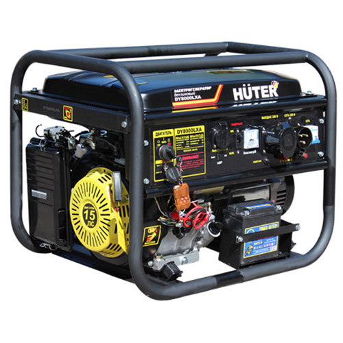 Внешний вид Huter DY8000LXA Бензиновый генератор Huter DY8000LXA – это представитель линейки наиболее мощных изделий из разряда мобильных автономных электрогенераторных установок, созданных немецкой компанией Huter. Благодаря своим техническим возможностям это устройство с успехом применяется как сезонный, резервный или даже основной (для бытовых целей) источник электроснабжения. Такой агрегат очень удобен, например, при строительных работах, после чего его мощности будет вполне достаточно для бытового электроснабжения загородного дома. Кроме того, бензиновый генератор такого типа удобен для офисов, складских помещений, передвижных мастерских и т.д. С его помощью можно оживить любой ручной инструмент, оборудование или освещение.