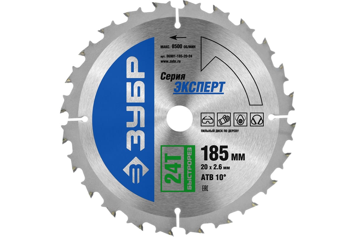 Технические характеристики пильного диска по дереву Зубр 36901-185-20-24