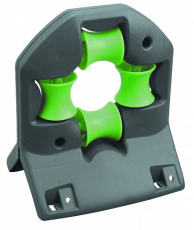 Устройство надежно фиксирует отдельные участки шланга, не допуская повреждения растений на грядках. Шланг проходит через ролики, предотвращая перегиб и излом.