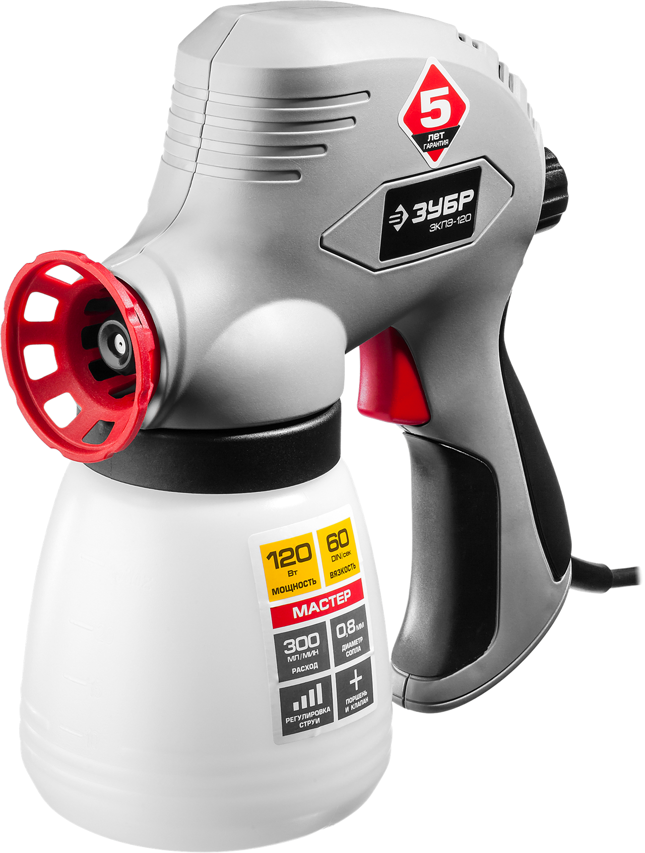 Универсальный инструмент для распыления большинства лакокрасочных материалов. Теперь стало просто и быстро окрасить поверхность, обработать антисептиком, покрыть лаком, нанести узоры. Исключение затрат на расходные материалы (валики, кисти), уменьшение расхода наносимого материала, отсутствие разводов и потеков, существенное ускорение работы - главные преимущества использования краскопультов ЗУБР