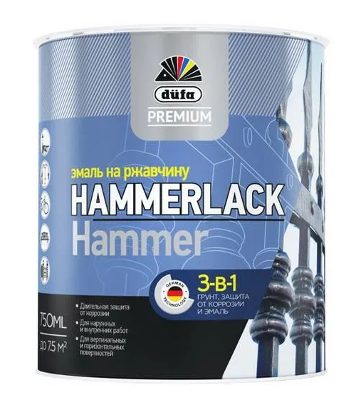 Эмаль Dufa Hammerlack 3в1 0.75л гладкая Ral 9010 Белая