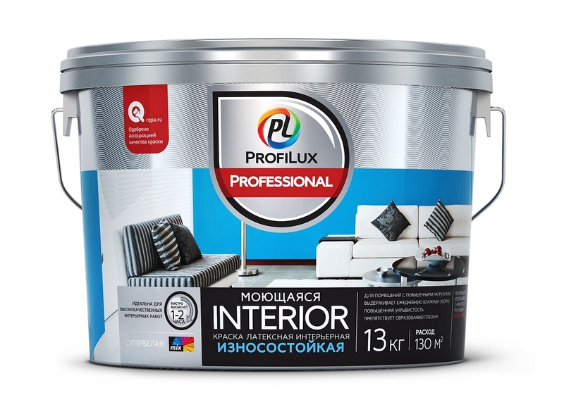 Краска Profilux Interior латекс для влажных помещений моющаяся матовая база 3 13кг