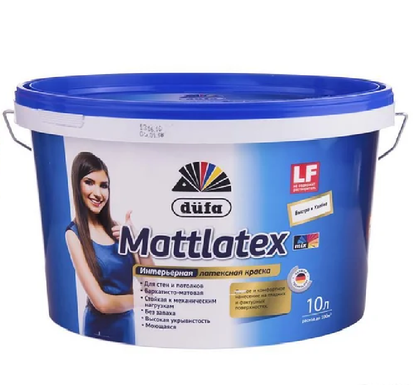 Краска Dufa Mattlatex для влажных помещений 10л матовая латексная белая