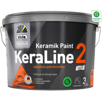 Краска Dufa Premium ВД KeraLine 2, база 1, 2,5 л МП00-006510 предназначена для защитно-декоративного окрашивания потолков и стен в сухих помещениях (спальня, гостиная, кабинет, кладовка, офис).