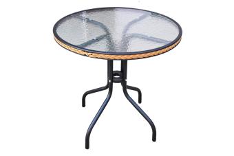 Столешница - каленое стекло в стальной обечайке с оплеткой из искусственного ротанга.