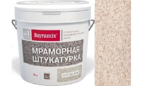 Мраморная декоративная штукатурка формирует неповторимое высокопрочное покрытие с естественным блеском натурального камня. Уникальность эффекта достигается благодаря наличию в составе крошки из мрамора и специальных добавок. Материал атмосферостойкий, паропроницаемый, экологичный, отличается хорошей адгезией с большинством типов оснований. Подходит для фасада, цоколя, стен и потолков, возможно нанесение при обустройстве «мокрого фасада» и отделке участков с повышенной эксплуатационной нагрузкой. Производитель выпускает продукт в двух фракциях — крупной и средней, в десяти популярных расцветках, придающих особую элегантность отделываемым поверхностям. Средний расход составляет 2.5–3.5 кг/м2 в зависимости от размера фракции.