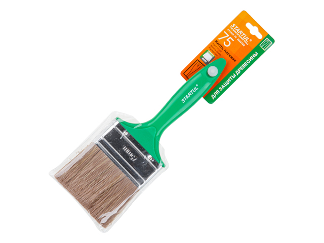 Тип и назначениекисть плоская для выполнения различных внутренних и наружных малярных работ на плоских поверхностях. Специальный микс для средств деревозащиты, лазурей,пропиток, антисептиков, грунтовок, а также для ЛКМ на водной основе