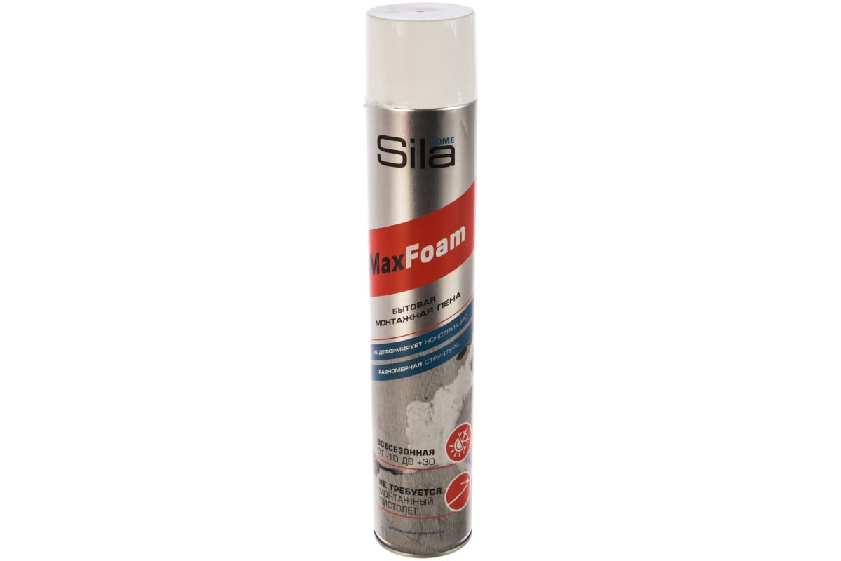 Монтажная всесезонная пена Sila HOME MAX FOAM 750 ml A1477Z предназначена для фиксации изоляционных и утеплительных материалов на стенах, заполнения швов, пустот, отверстий и щелей.