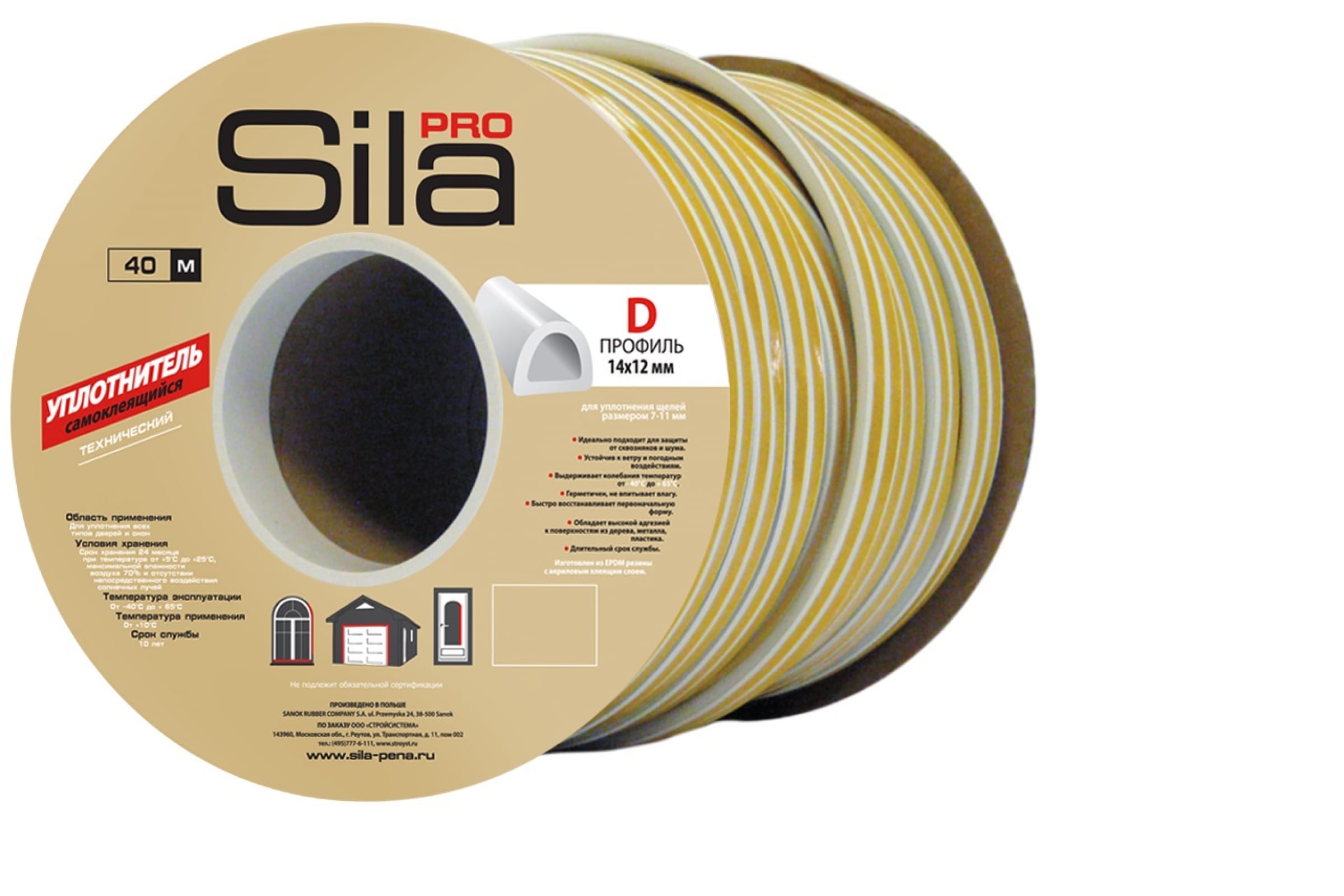 Самоклеящийся уплотнитель SILA изготовлен в Польше из качественной мелкопористой EPDM резины с клеящим армированным слоем и характеризуется очень высокой адгезией к дереву, металлу и пластику.