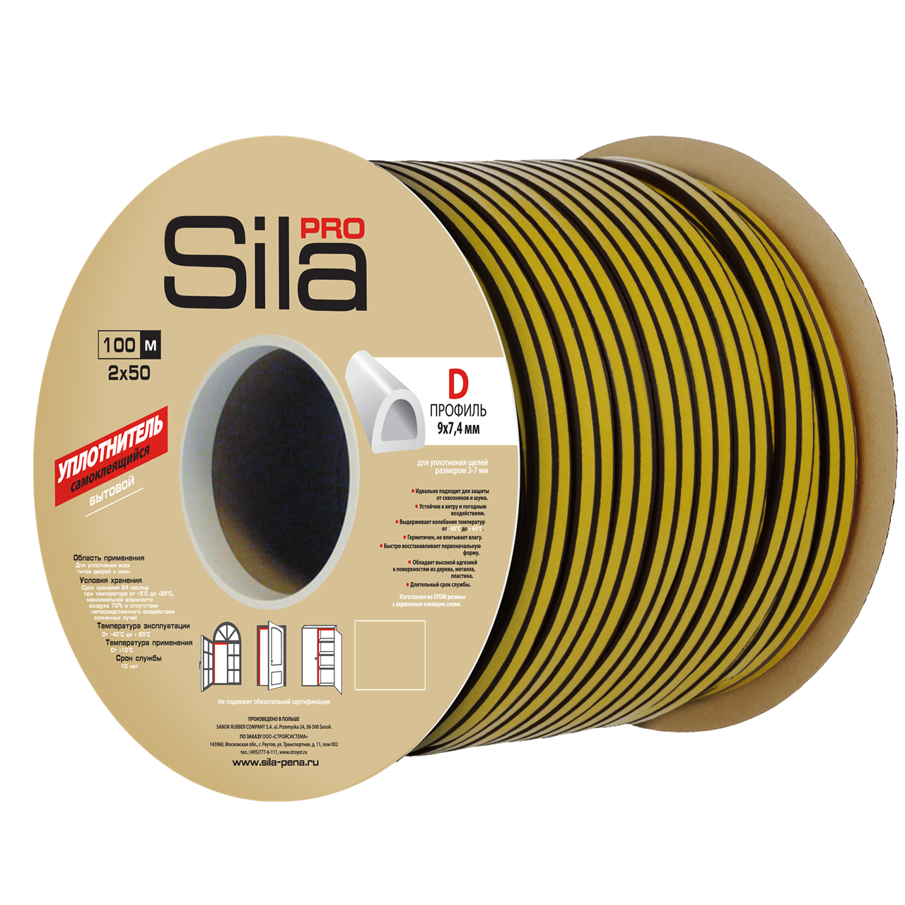 Самоклеящийся уплотнитель SILA изготовлен в Польше из качественной мелкопористой EPDM резины с клеящим армированным слоем и характеризуется очень высокой адгезией к дереву, металлу и пластику.