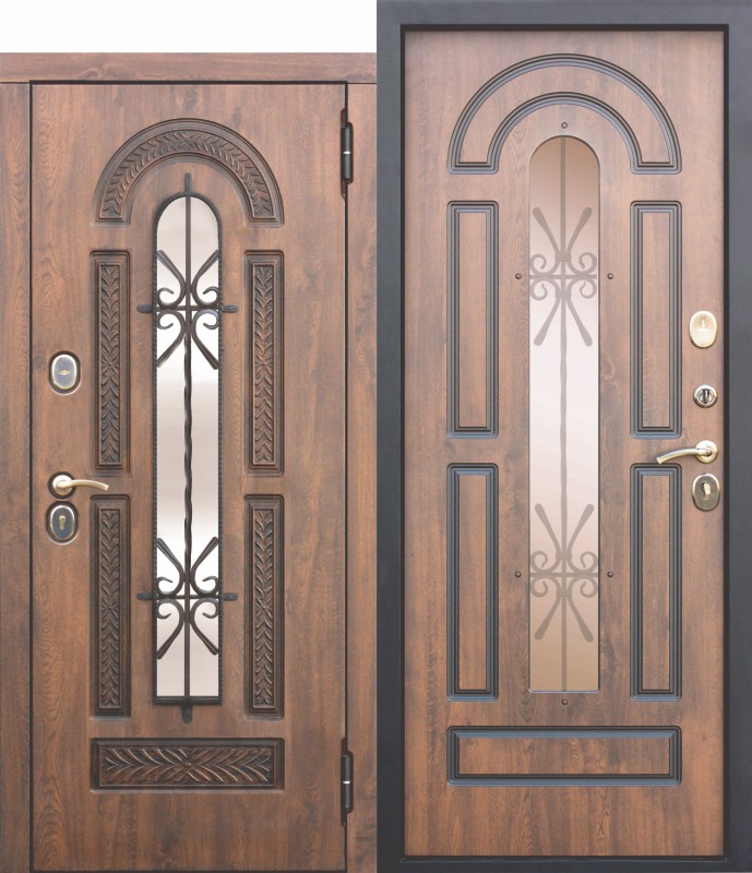 | Внешняя отделка полотна | фрезерованная МДФ-панель 12мм, плёнка Vinorit(Израиль) с патиной; Ковка: покрытие "Черный Муар" |