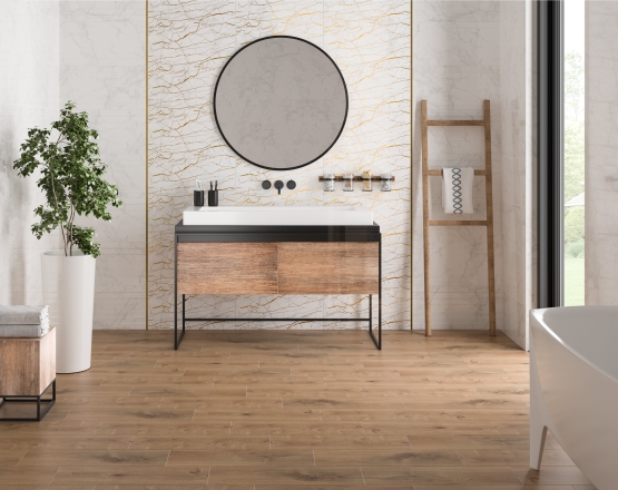 Точная имитация естественных характеристик. Керамогранитная плитка создается с использованием современных технологий, позволяющих воспроизвести рисунок, цвет, прожилки и шероховатость натурального материала. На керамогранит даже наносят небольшие трещинки для полного соответствия оригиналу.
