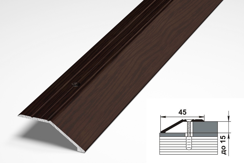 Профиль служит для декоративной стыковки двух разноуровневых напольных поверхностей с перепадом до 15мм.