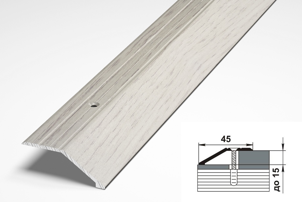 Профиль служит для декоративной стыковки двух разноуровневых напольных поверхностей с перепадом до 15мм.