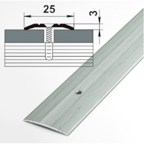 Плоский порог шириной 25 мм с двумя желобками. Это незаменимая деталь для логического завершения настила напольных покрытий.