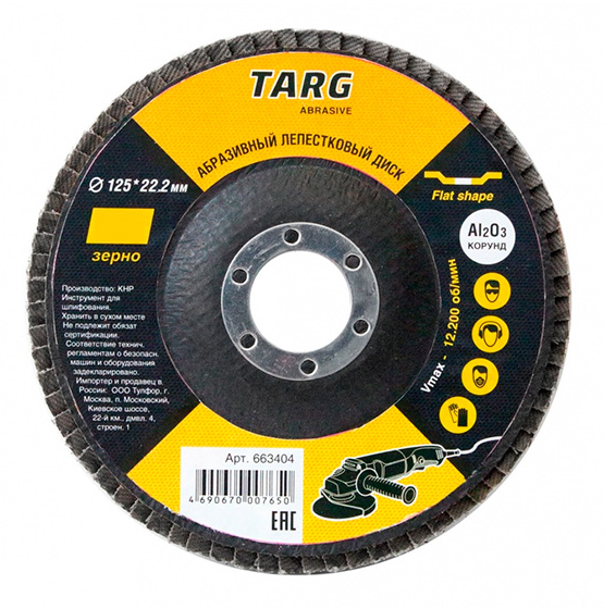Круг лепестковый 125*22.2мм зерно 40 Targ Артикул 054938 68 ₽ шт Поторговаться В наличии Описание Характеристики: Диаметр - 125 мм Зернистость - P40
