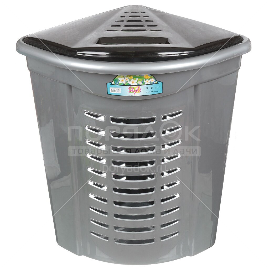 Корзина для белья 45л 38х38х55 Серебро угловая Дюна
