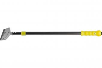 Универсальный телескопический скребок аккуратно счищает разного рода загрязнения со стекла, керамических изделий, а также с кафельного пола, не повреждая при этом поверхность. Выдвижной стержень позволяет производить соскабливание в труднодоступных местах (например, при наружной очистке окон в крупных офисных зданиях). Приспособление обладает эргономичной пластмассовой рукояткой, повторяющей форму руки. Сам скребок изготовлен из металла, а его сменное лезвие - из нержавеющей стали.