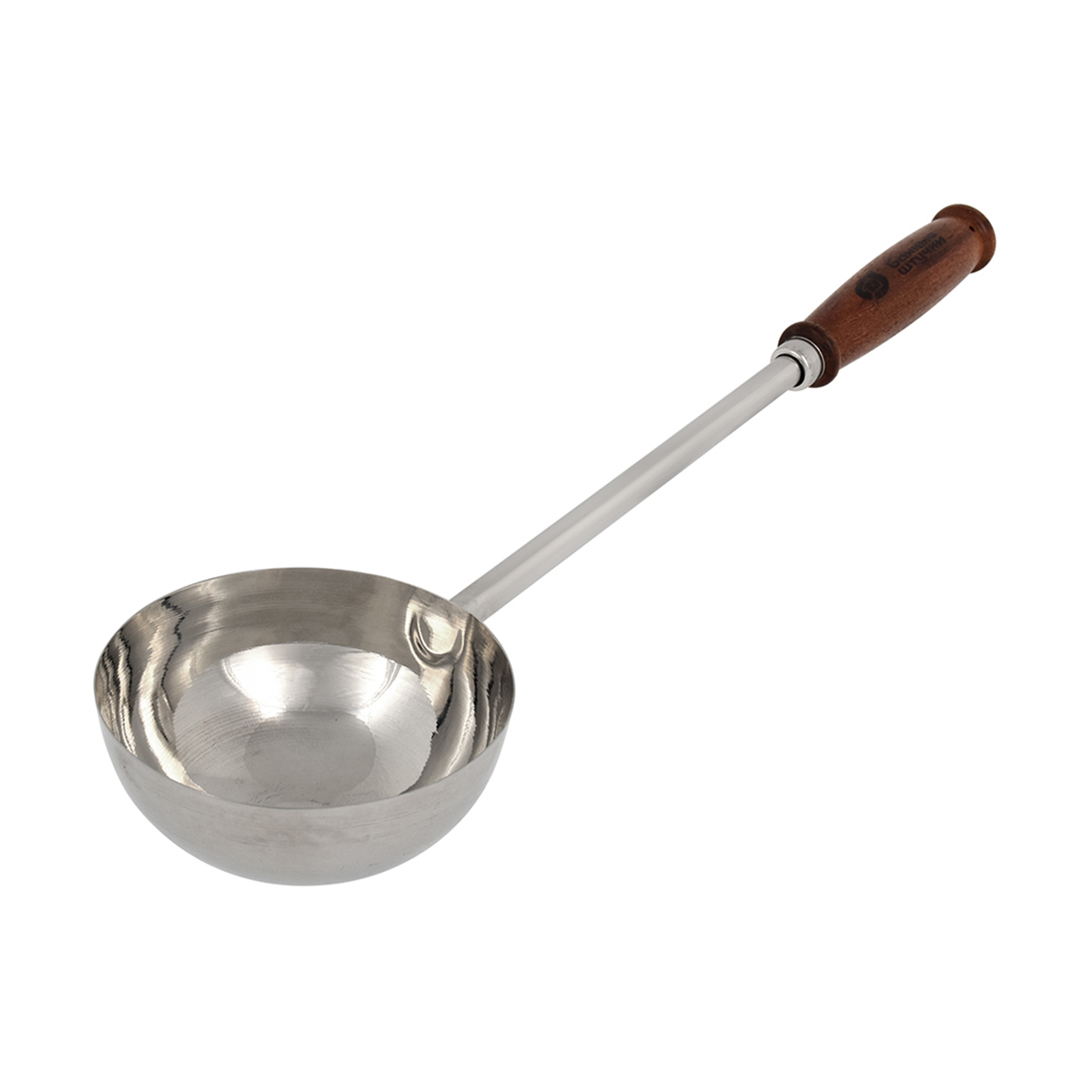 Качественный ковш из нержавеющей стали с деревянной ручкой отлично подойдет для любой бани и сауны. Длины 35 см будет достаточно для удобного использования.