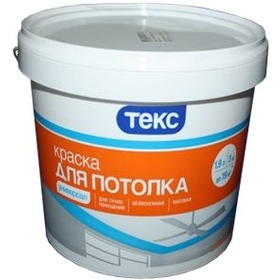 Текс Универсал - водно-дисперсионная краска для потолков. Предназначена для окраски потолков и верхних панелей стен внутри сухих помещений по бетонным, оштукатуренным, гипсокартонным, кирпичным, деревянным поверхностям. Краска рекомендована для использования в детских учреждениях и помещениях административной группы лечебно-профилактических учреждений.