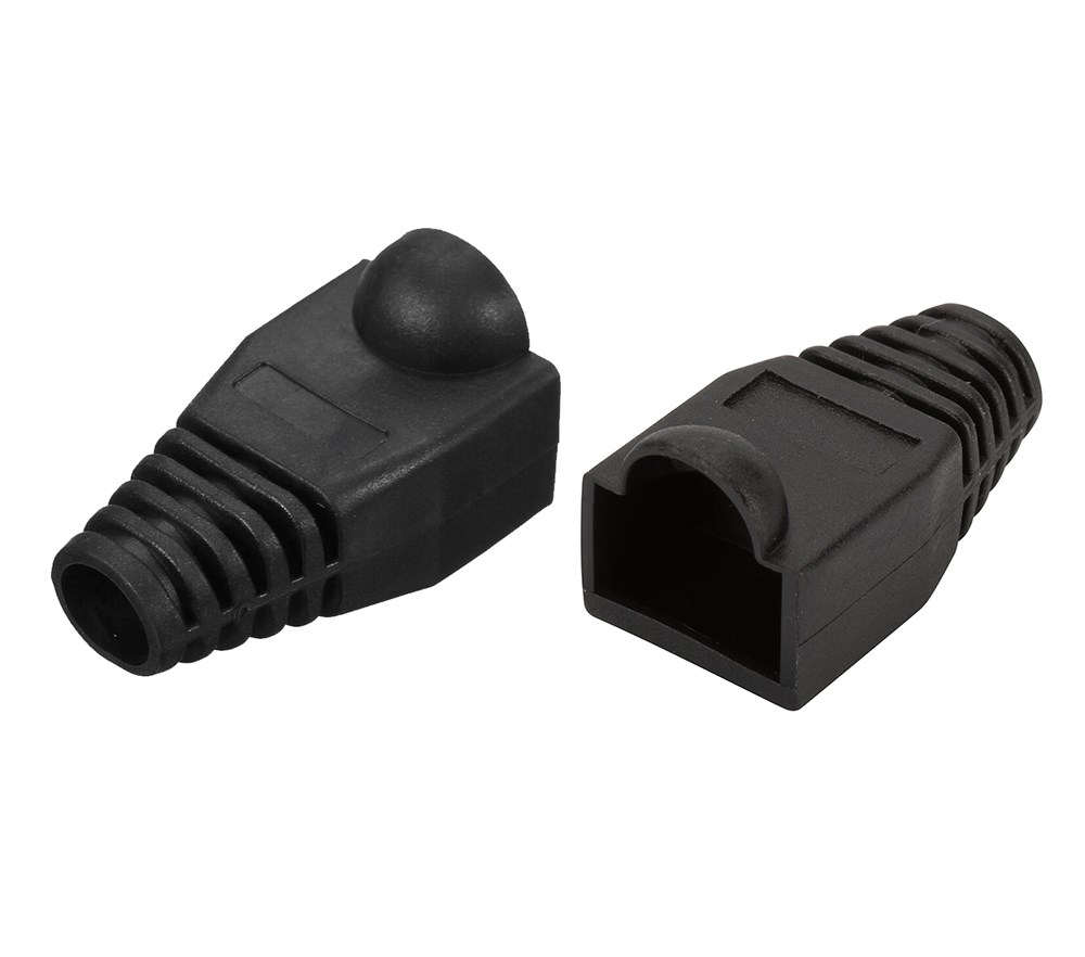 Колпачок RJ-45 черный REXANT предназначен для дополнительной защиты места соединения разъема RJ-45 (8P8C) и информационного кабеля при построении телефонных и компьютерных сетей. Защитный колпачок оберегает кабель от перегиба в месте соединения с разъемом, а также защелку коннектора от повреждения, что значительно увеличит срок службы готового шнура. Чаще всего он применяться с витой парой диаметром до 6 мм. Данный колпачок изготовлен из пожаростойкого и эластичного черного полипропилена и обладает высоким уровнем надежности при эксплуатации телекоммуникационного оборудования. Колпачок совсем не увеличивает габариты разъема, и позволяет использовать его в информационных шкафах с высокой плотностью портов. Использование цветных колпачков допускает возможность выделения определенных проводов, т.е. служит маркером кабеля.