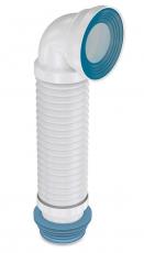 Раздвижная гофрированная труба для унитаза, укрепленная стальной спиралью и оснащенная универсальным мягким манжетом позволяющим крепить трубу к соединению диаметром от 90 до 110 мм. Подключение к унитазу под углом 90 градусов.