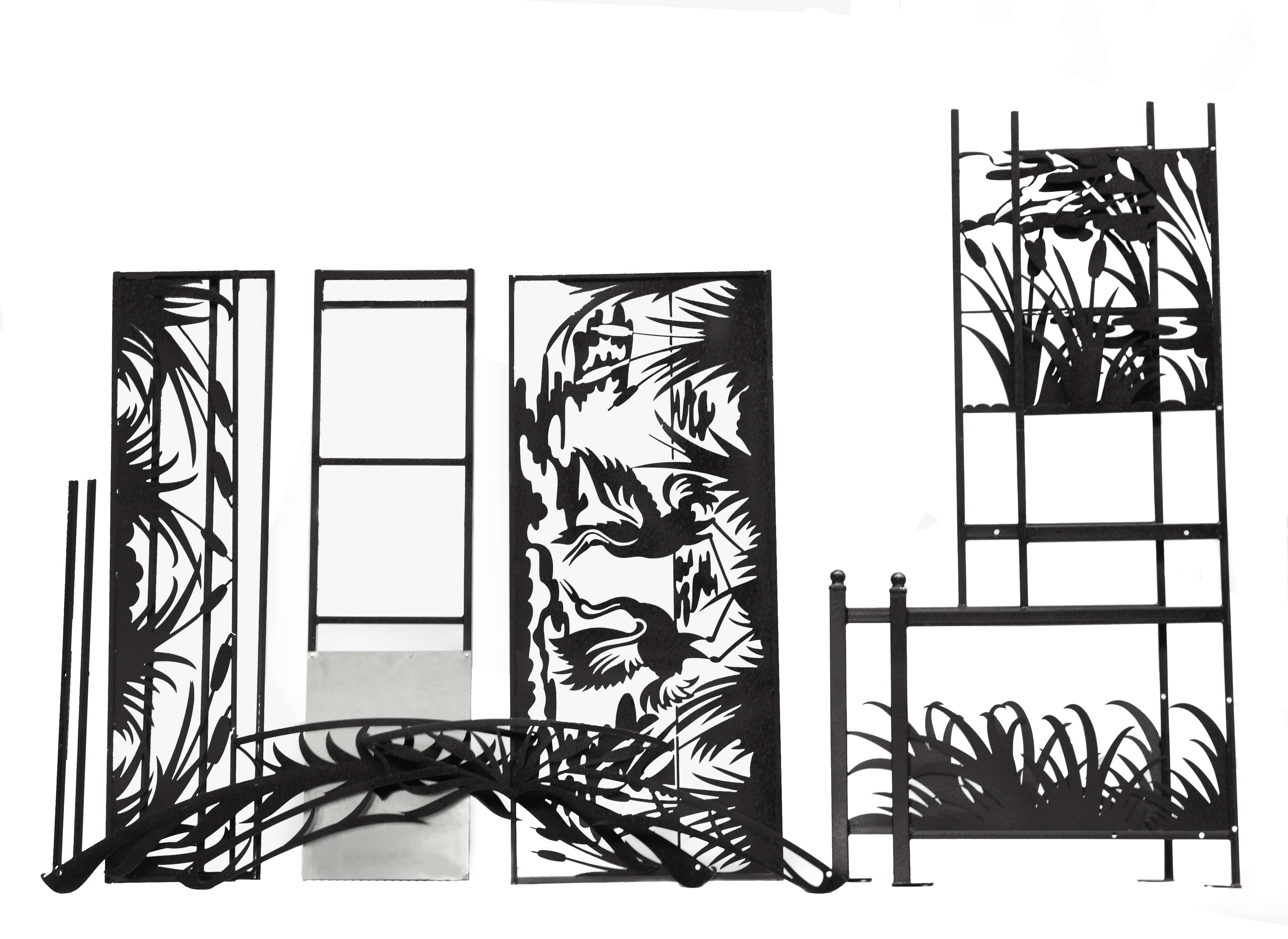 Все художественные элементы выполнены из листовой стали толщиной 2 мм, что обеспечивает необходимую прочность и легкость конструкции.