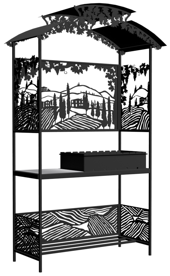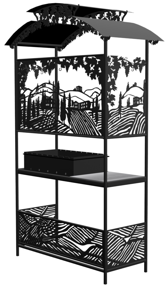 Мангал Тоскана Лайт - это металлический разборный мангал среднего размера с крышей и с резными рисунками итальянских виноградников.
