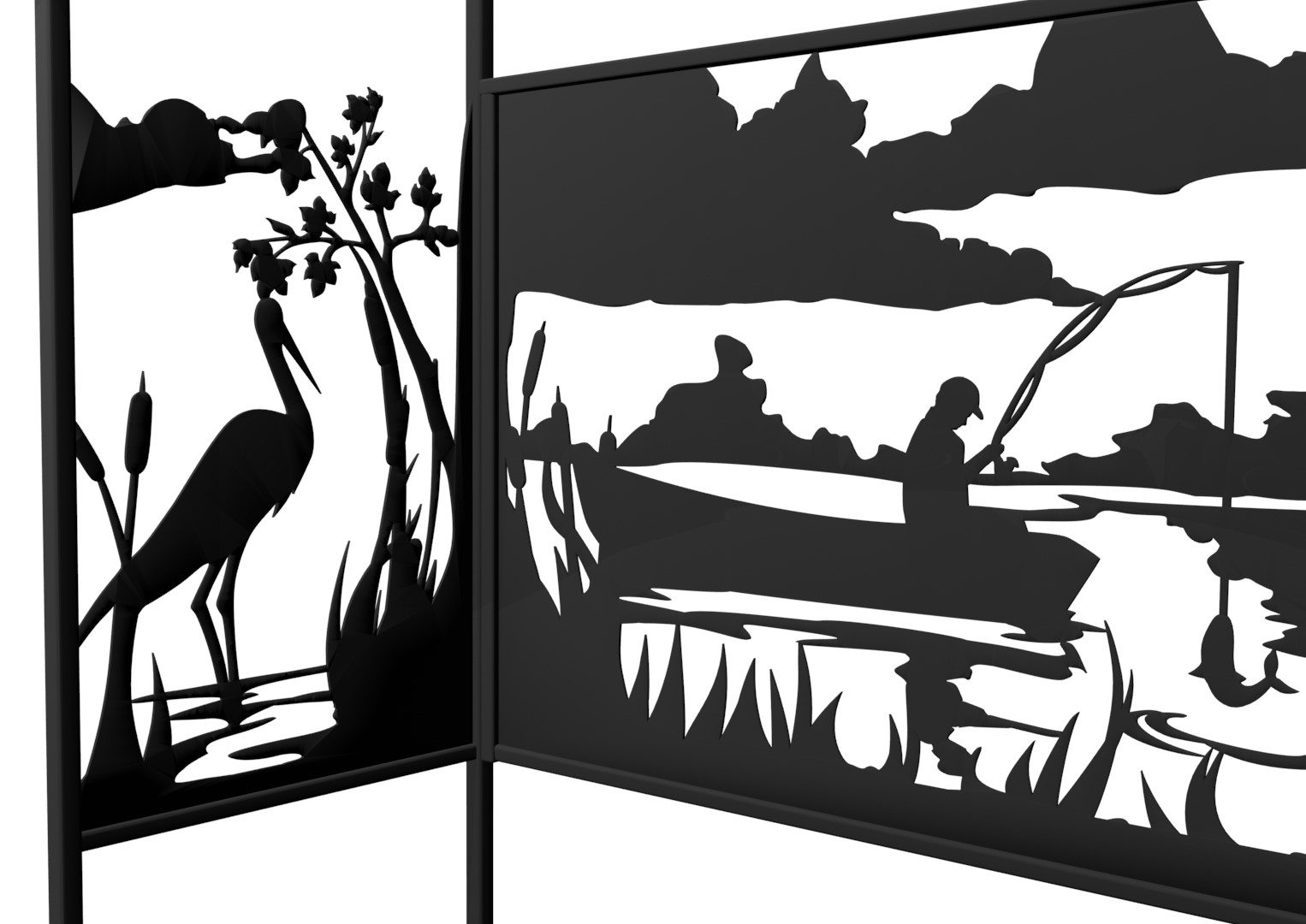 Мангал Рыбалка Лайт - это металлический разборный мангал среднего размера с крышей и резными рисунками с мотивом рыбалки на тихой реке. Новинка 2019 года!