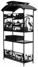 Данный мангал прекрасно подходит для стационарной установки на дачном участке. Благодаря наличию столика рядом с топкой и крыши защищающей от непогоды, приготовление на мангале становится очень удобным для повара.