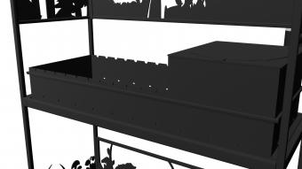 Каркас и все художественные элементы покрашены молотковой краской, имеющую интересную структуру, получаемую при ручной
