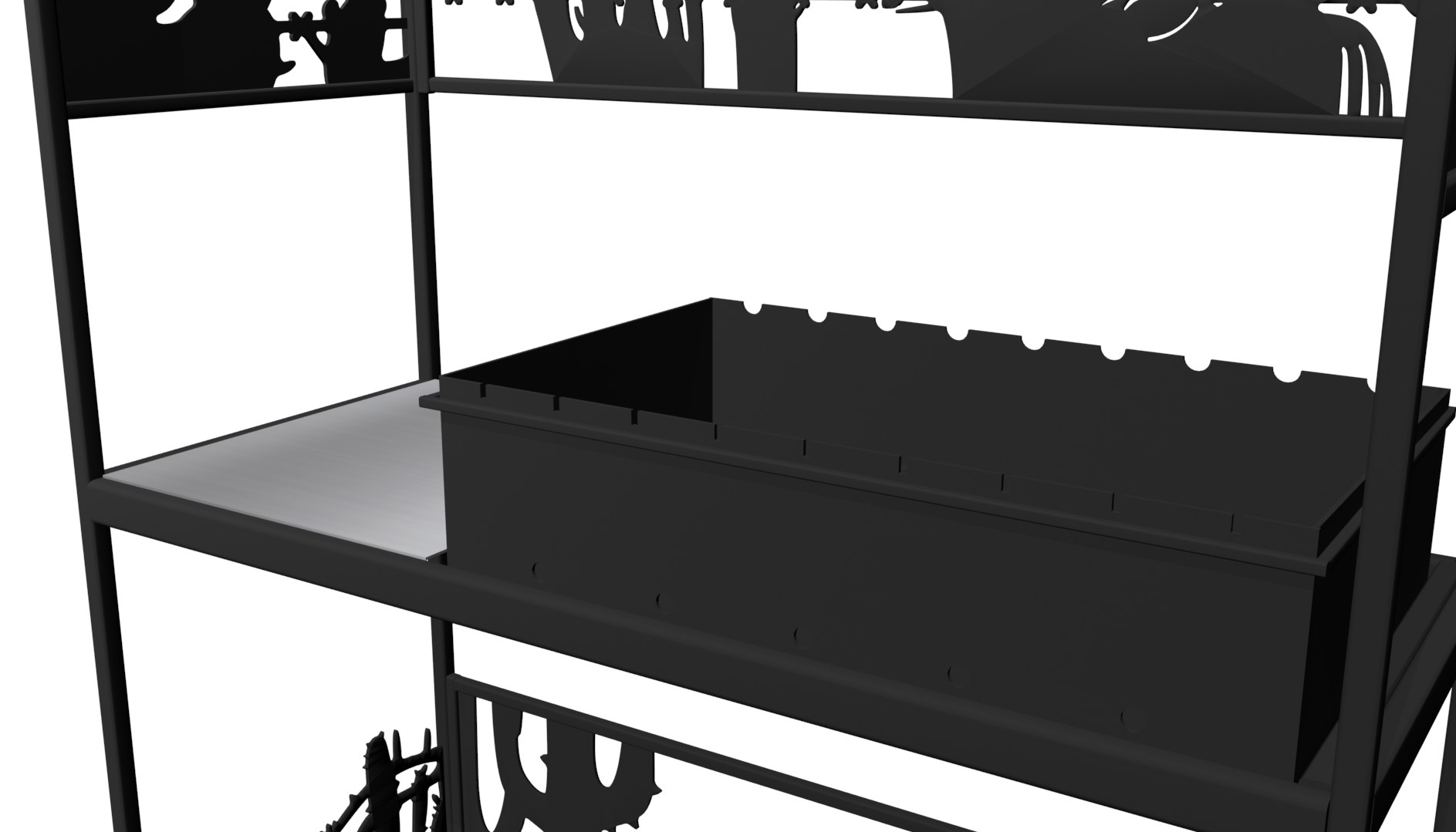 Топка выполнена из листовой стали толщиной 3 мм. В верхней части усилена по периметру металлическим прутом квадратного сечения 10 мм, что защищает топку от сильных тепловых деформаций. Покрашена термостойкой краской, которая позволят сохранять длительное время хороший внешний вид даже при очень частом использовании.