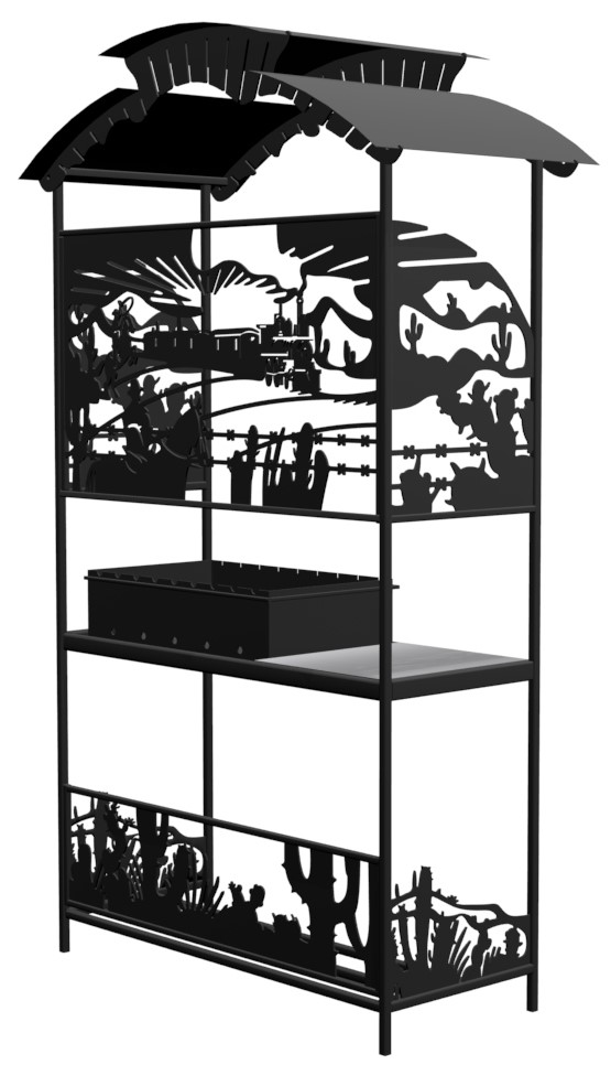 Мангал Дикий Запад Лайт - это металлический разборный мангал среднего размера с крышей и с резными рисунками ковбоев с дикого запада. Новинка 2019 года!
