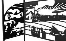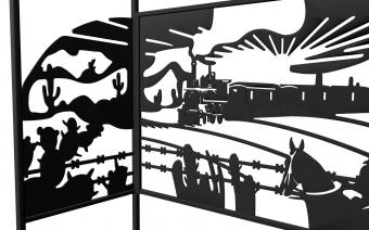 Мангал Дикий Запад Лайт Казан - это металлический разборный мангал среднего размера с крышей и с резными рисунками ковбоев Дикого Запада. Новинка 2019 года!