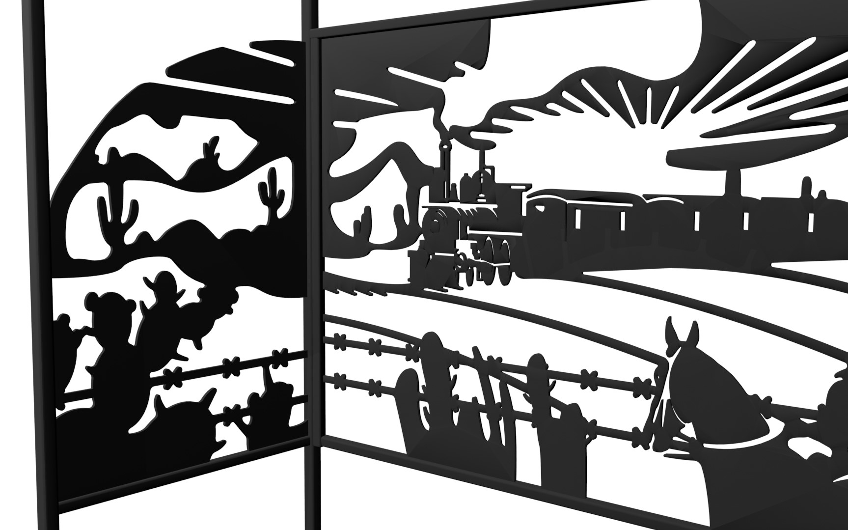 Все художественные элементы выполнены из листовой стали толщиной 2 мм, что обеспечивает необходимую прочность и легкость конструкции.
