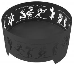 Круглое кострище "Кокопелли" будет отлично смотреться на дачном участке установленное на траву или на подготовленную поверхность.