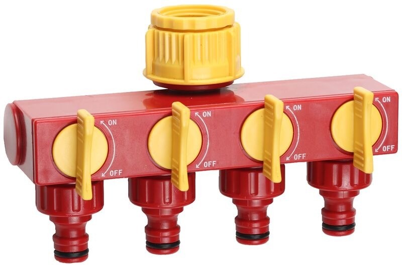 Применяется для одновременного подключения четырех водозаборных линий к водопроводной трубе или крану с внешней резьбой 1". В комплект поставки входит адаптер 3/4"