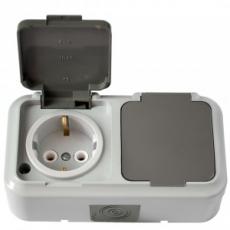 Розетка ОП Bylectrica Пралеска Аква 2 с/з серая IP54 РА16-303(03)