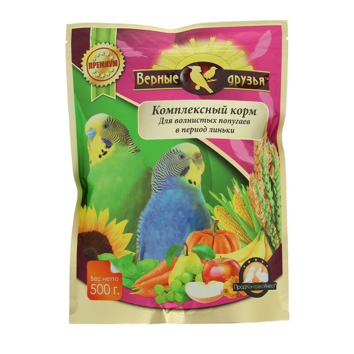 Корм "Верные друзья" для волнистых попугаев в период линьки 500г Артикул 064218 180 ₽ шт Поторговаться В наличии